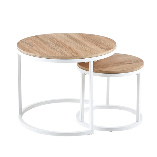 Table Basse en Chêne Clair Table de Salon 2 pcs Φ80 * 45cm / Φ60 * 35cm - Blanc-CARB