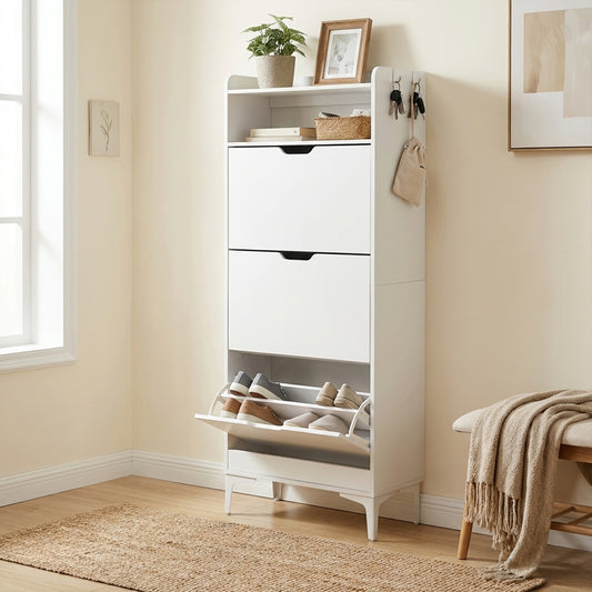 Meuble à chaussures MELVIN à 3 rabats, 60 x 159,3 cm - MDF blanc