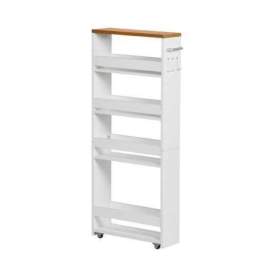 Chariot de rangement à roulettes fin à 5 niveaux - Chariot de cuisine étroit avec roulettes, blanc - BOCA