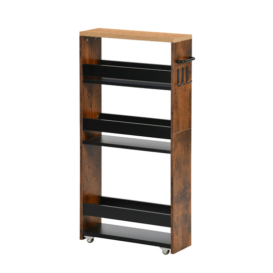 Chariot de rangement étroit à roulettes à 4 niveaux, design fin pour cuisine - Couleur feu/Blanc - ENTIAT