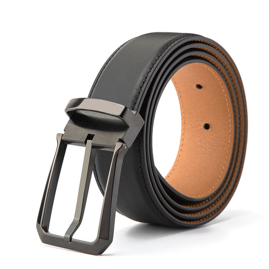Geel Ceinture classique avec boucle ardillon en cuir de vachette de première qualité - Noir Acier