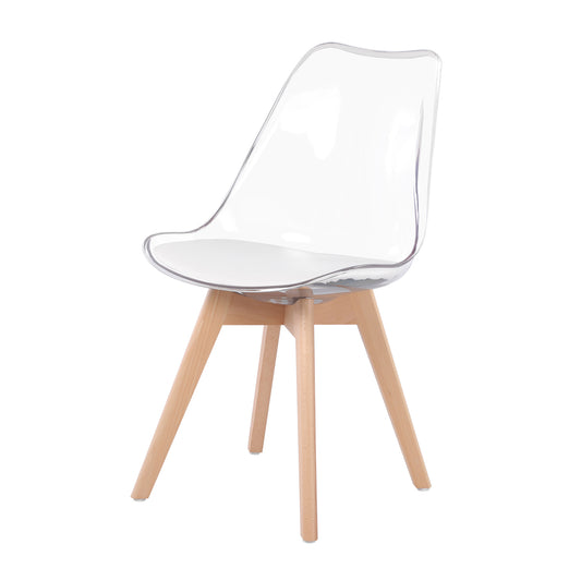 LUCCA Chaises de Salle à Manger Transparentes Coussin de Siège en Cuir PU et Pieds en Hêtre Massif - Noir/Blanc/Gris