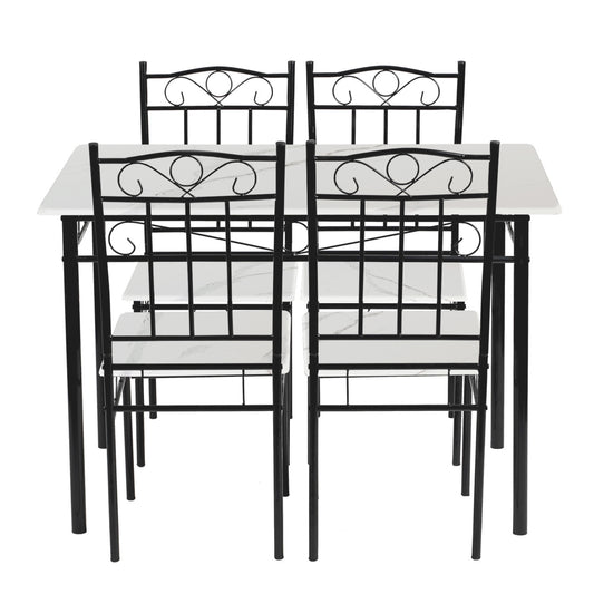NORSEMAN Marbling Table à Manger 5 Pièces avec 4 Chaises - 109 * 69 * 75cm - Blanc/Noir/Brun clair