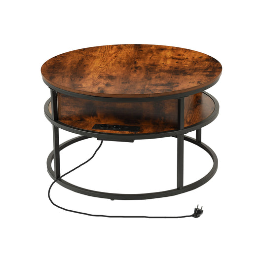 Table basse relevable pour salon avec compartiment caché et prises de courant