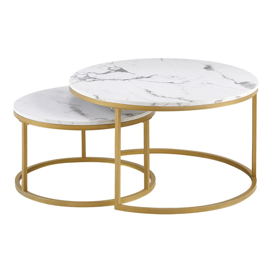 VARESE Table basse gigogne Φ80*45cm/Φ60*35 - Couleur marron/MARBRE