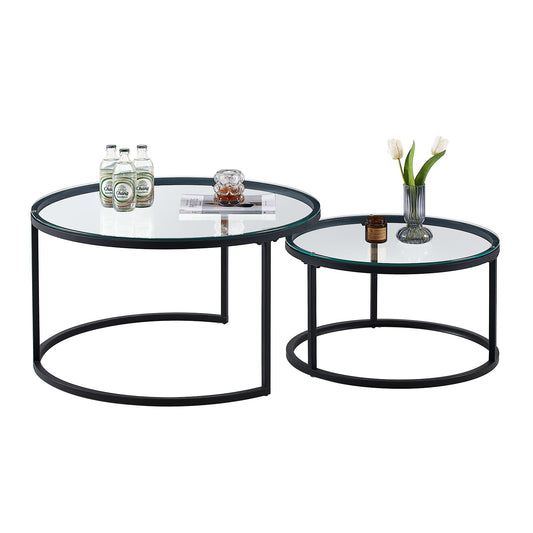 NAPLES Table Basse Ronde, Ensemble De 2, Cadre En Métal Robuste Et Verre Trempé (Doré Et Noir)