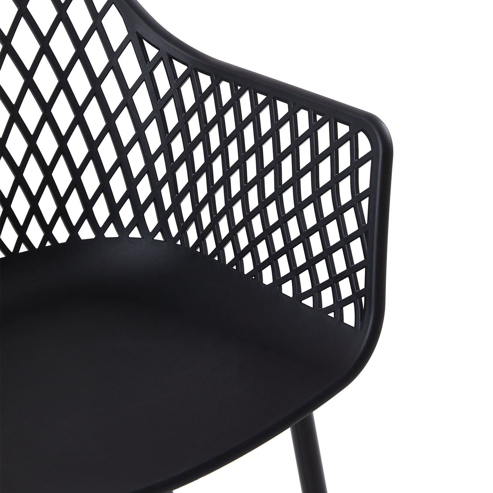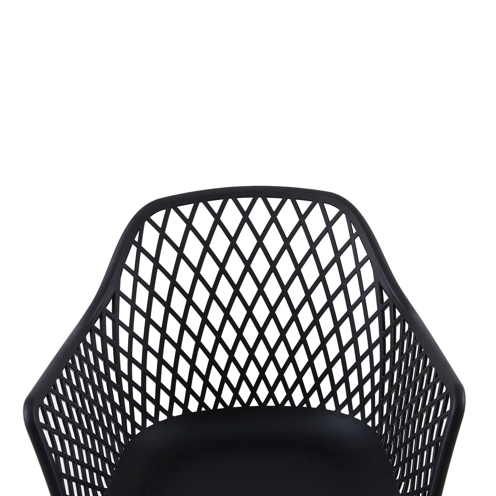Description des matériaux : Les sièges sont en plastique polypropylène noir. La structure du piètement est constituée de 4 pieds solides en métal peint noir.