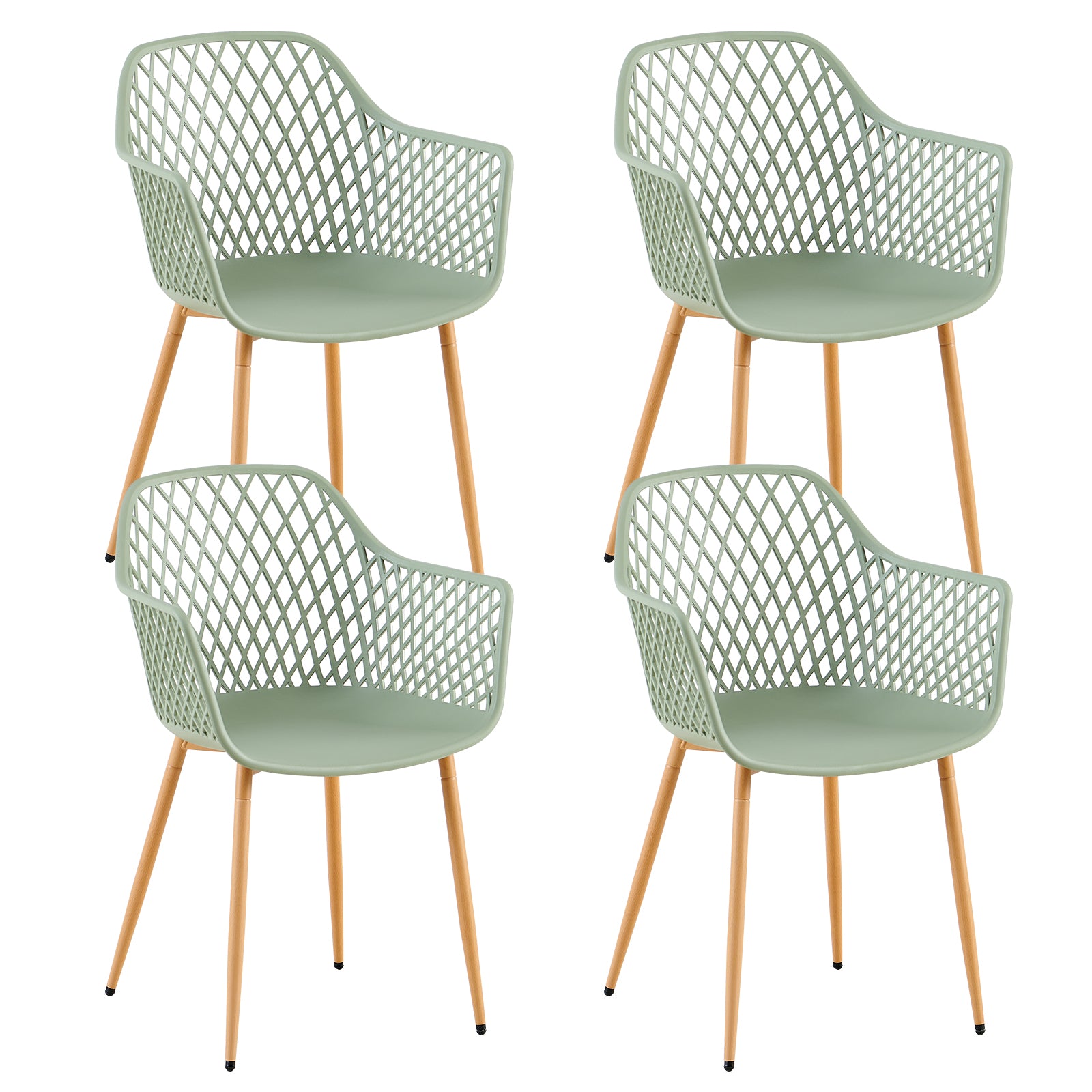 - Matériaux de haute qualité : L'assise est fabriquée en plastique polypropylène vert-gris, tandis que la base robuste se compose de quatre pieds en fer peints en métal, assurant stabilité et durabilité.