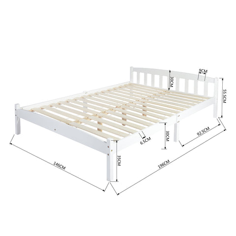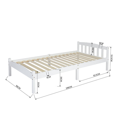 Lit Simple Cadre de Lit en Bois Massif 90x190cm,Lit Double Cadre de Lit en Bois Massif 140x190cm avec Sommier en Lattes, Solide pour Enfants Adultes, Blanc