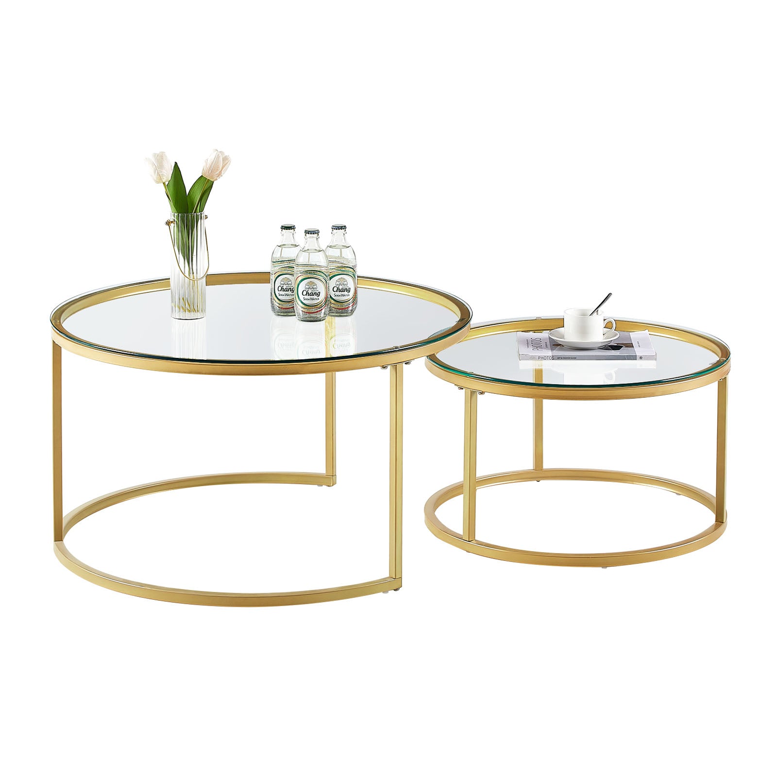 ENSEMBLE DE 2 TABLES BASSES: Bel ensemble de tables gigognes, parfait pour le salon, la chambre, le balcon et le bureau.