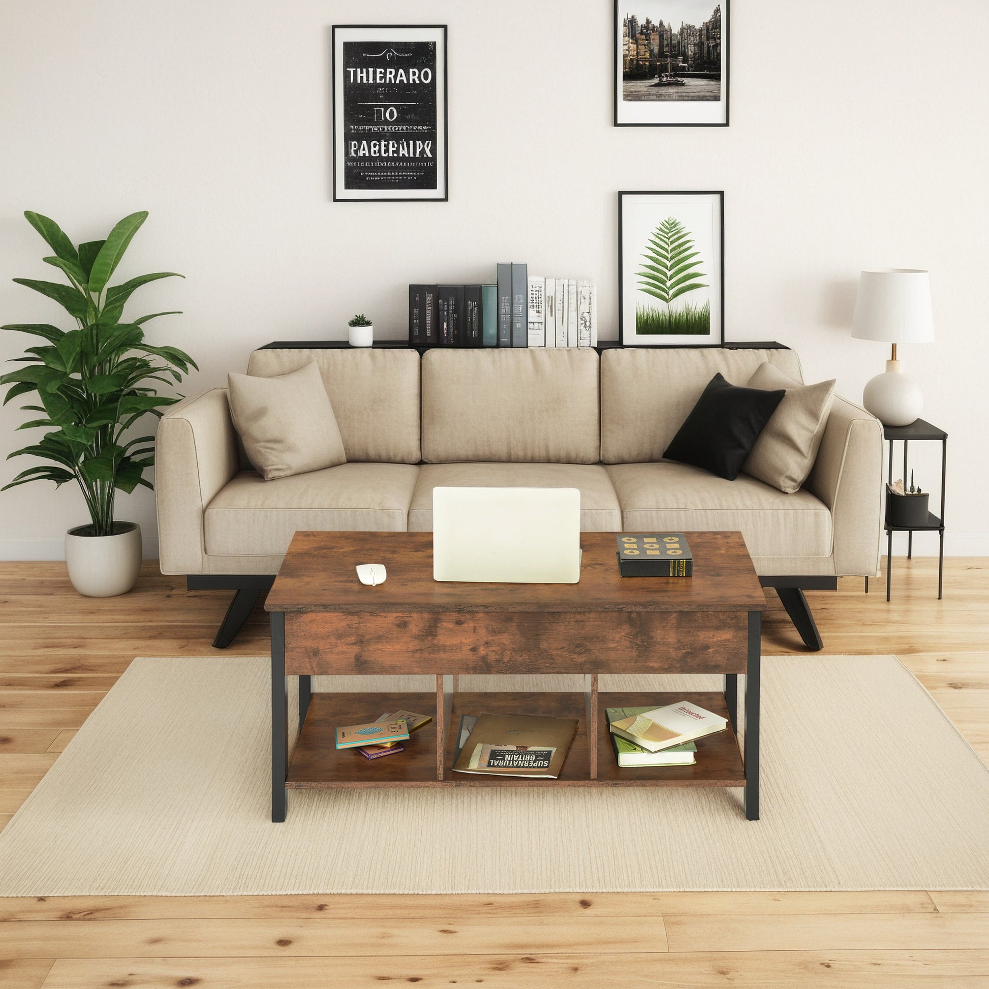 Optimisez votre espace grâce au compartiment de rangement caché sous le plateau et à l'étagère inférieure ouverte. Le compartiment de rangement est parfait pour organiser les télécommandes, magazines, livres et autres objets quotidiens, tandis que l'étagère ouverte offre un espace de rangement supplémentaire pour les objets plus volumineux. Tout est à portée de main, ce qui permet de garder votre salon propre et bien organisé.
