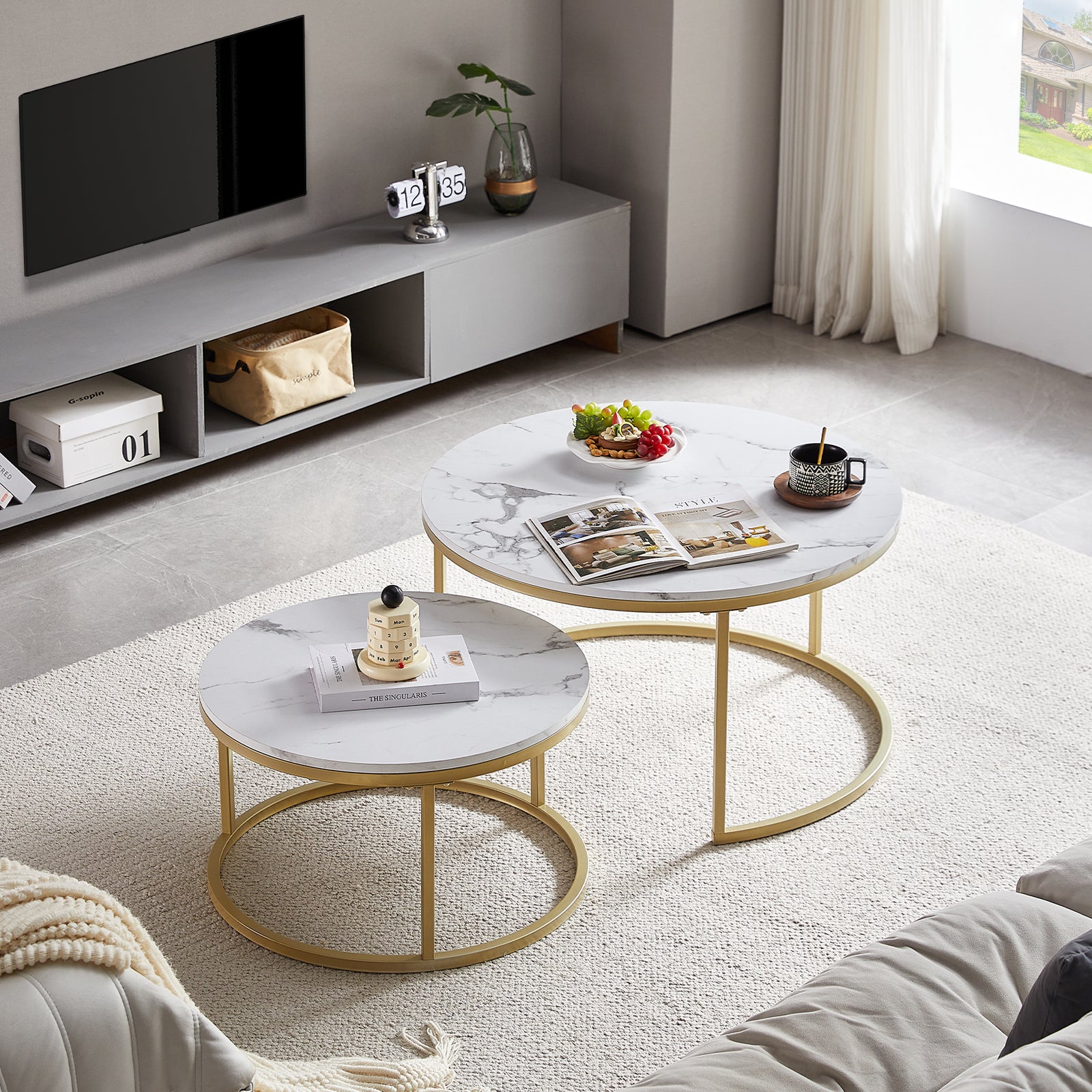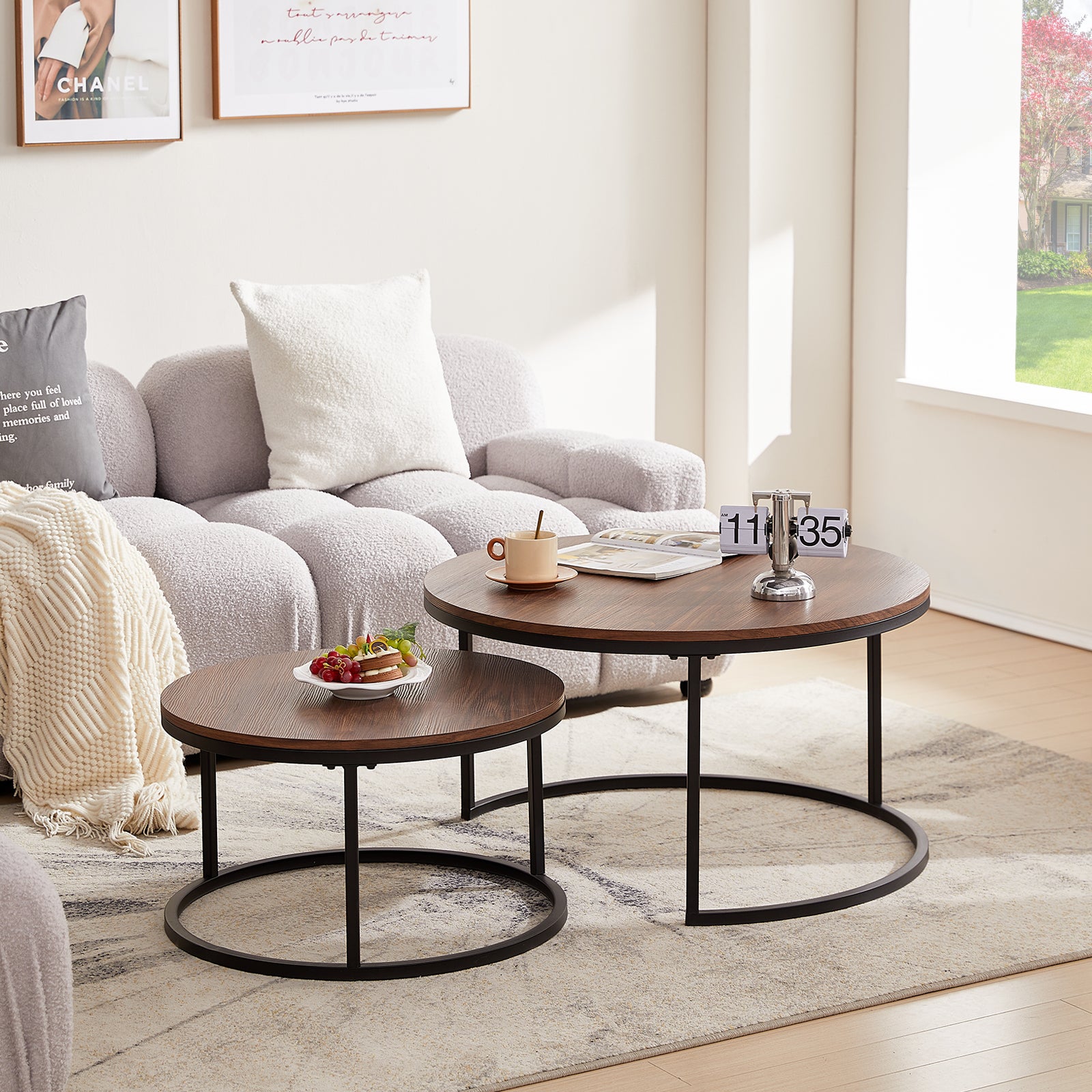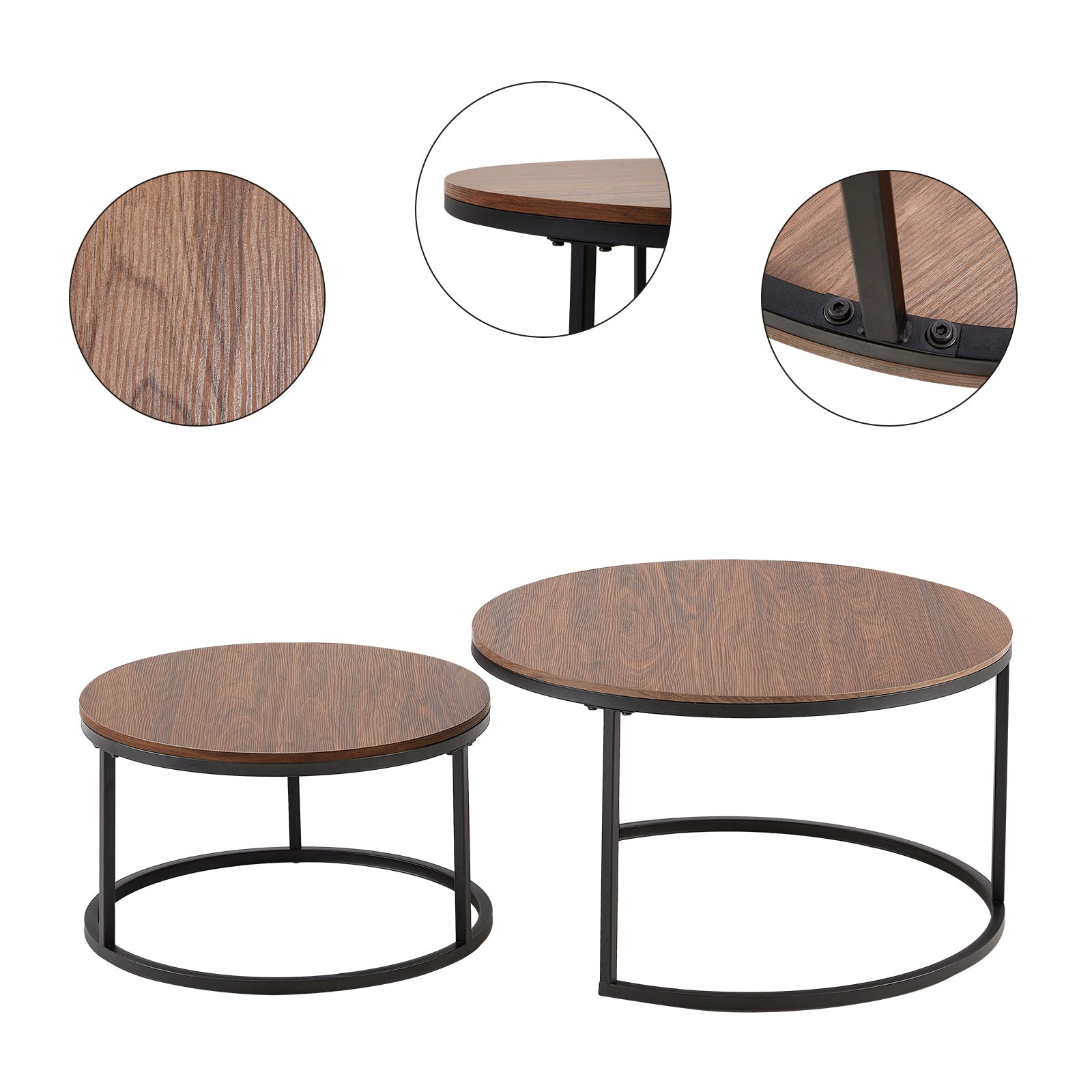 ENSEMBLE DE 2 TABLES BASSES : Bel ensemble de tables gigognes, parfait pour le salon, la chambre, le balcon et le bureau.